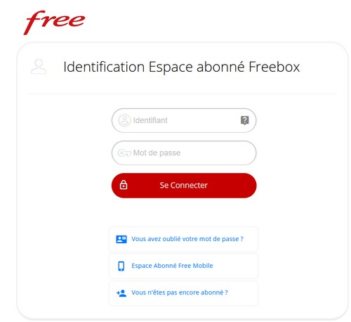 En cliquant sur “Vous avez oublié votre mot de passe ?”, une procédure de récupération sera lancée. Il suffira alors de renseigner votre identifiant et votre code postal. L’identifiant peut être le numéro de la ligne téléphonique France Télécom à 10 chiffres, le numéro de la ligne téléphonique Freebox à 10 chiffres ou l’identifiant Freebox commençant par FBX ou FO.