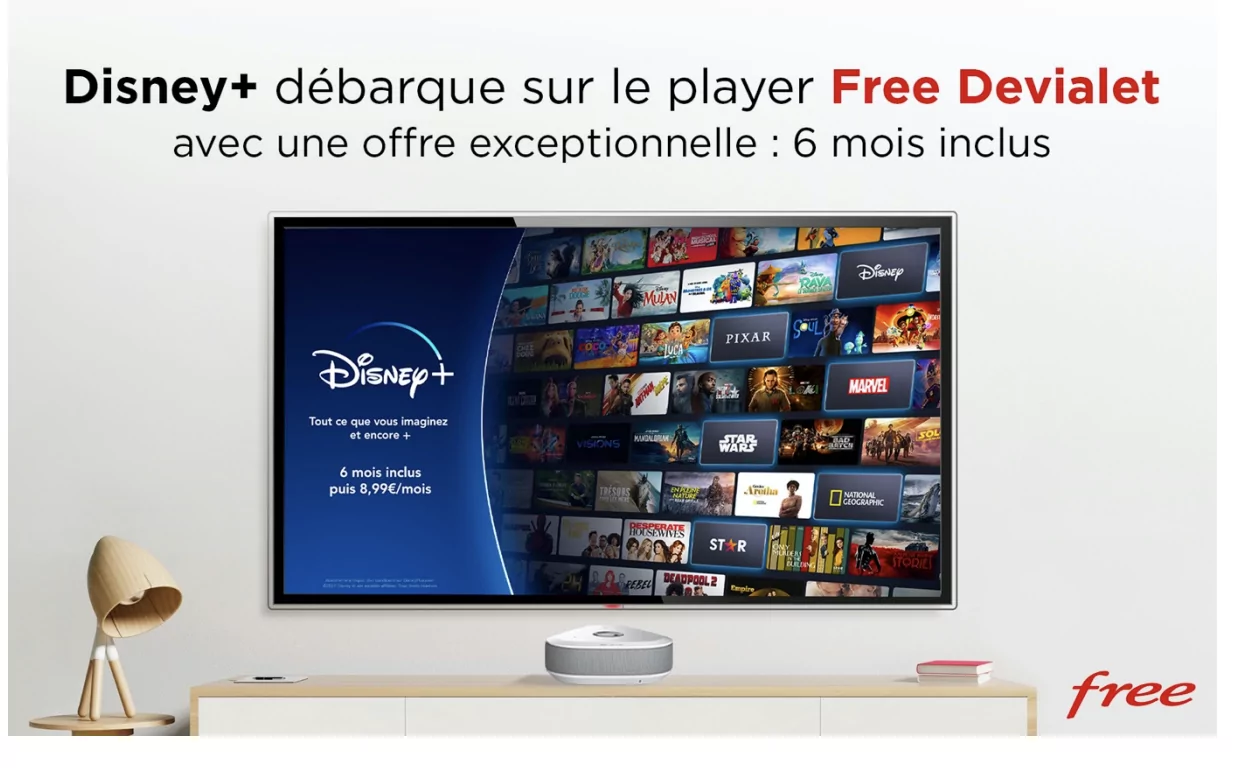 Ne manque plus que la Freebox Révolution. Dès aujourd’hui, les abonnés actuels et nouveaux Freebox Delta avec Player Devialet peuvent jouir de tous les contenus de Disney+, annonce Free. Le service de SVoD de la firme aux grandes oreilles débarque enfin directement sur le boitier TV très haut de gamme de l’opérateur. Pour couronner le tout, 6 mois sont inclus comme pour les abonnés Freebox Pop, Delta Pop et mini 4K. L’abonnement passera ensuite à 8,99€/mois sans engagement. Les abonnés Freebox One ne sont pas laissés-pour-compte, Disney+ fait aussi son apparition sur cette box, avec la même promotion.