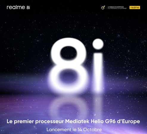 Quant à la marque Realme, elle tease un événement organisé le 14 octobre autour du Realme 8i. Il s’agit du premier smartphone disponible sur le marché européen avec le SoC Helio G96 à bord. La plate-forme de MediaTek est synonyme d’un processeur octa-core 2,05 GHz et d’une compatibilité réseau 4G.