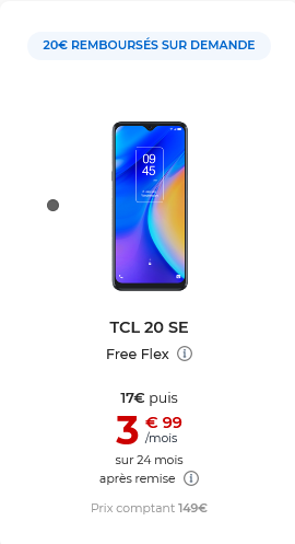 Une nouvelle offre de remboursement est disponible pour l’achat du TCL 20 SE dans la boutique Free Mobile.