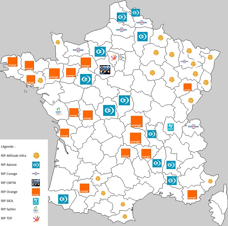 - RIP Losange (Altitude) : départements 08, 10, 51, 52, 54, 55 et 88 (1,3 million de prises)