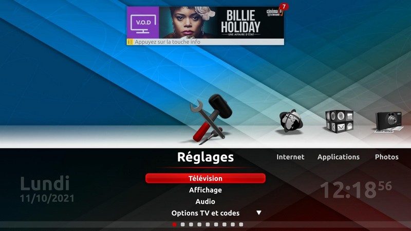 Dans le cas de la Freebox Révolution, il faut faire “Réglages”, puis “Télévision”.