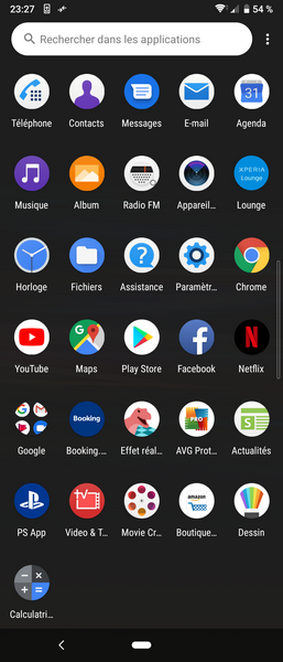 Terminons sur la partie logicielle, avec une expérience proche de l’Android de base et quelques ajouts côté applications comme Netflix, PS App, Xperia Lounge… On retrouve la gélule pour la navigation à la gestuelle et le tiroir d’applications.