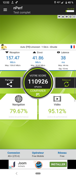 D’après nos tests de débits 4G, réalisés dans nos endroits habituels, on peut aisément dépasser les 150 Mbit/s.