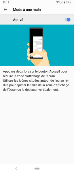 Parlons maintenant de son écran allongé qui offre une bonne luminosité, de jolies couleurs et de bons angles de vision. Son format est un pur bonheur dans les vidéos et jeux qui gèrent ce format, grâce à un grand champ de vision qui participent grandement à l’immersion. Notez qu’il est possible de régler la teinte d’affichage dans les paramètres et qu’un mode à une main est accessible après un double tapotement sur le bouton d’accueil.
