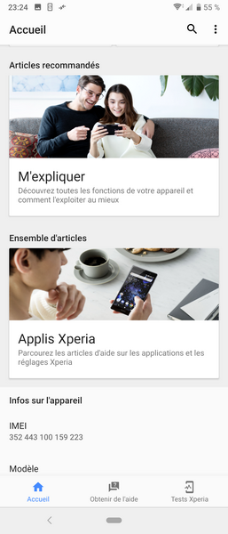 On note aussi la partie assistance accessible depuis les paramètres pour en savoir plus sur les caractéristiques de son appareil, mais également pour en découvrir davantage sur les fonctions et réglages. Un aspect bienvenu pour les débutants.