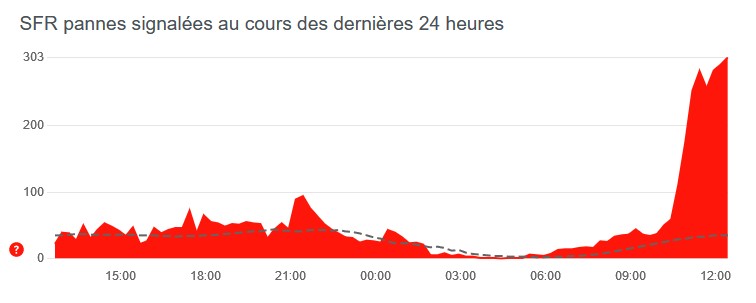 Le problème semble concerner les lignes fixes comme les lignes mobiles. Il a été signalé dans plusieurs grandes villes françaises, incluant notamment Paris, Lyon, Toulouse, Bordeaux, Marseille et Montpellier. Comme le montrent les remontées dans DownDetector, outil en ligne permettant de surveiller les incidents réseau, les dysfonctionnements ont commencé en milieu de matinée pour s’intensifier.