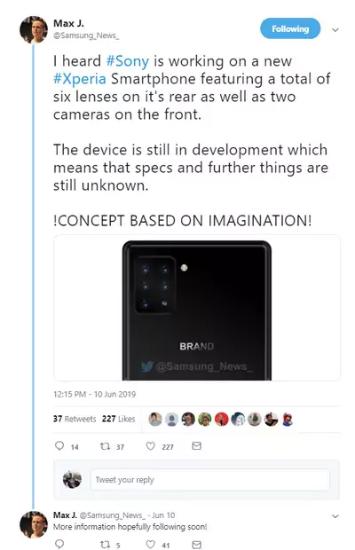 Selon le compte @Samsung_News_ sur Twitter, Sony plancherait sur un smartphone Xperia qui embarquerait pas moins de huit capteurs photo. Six prendraient place au dos, tandis que deux se retrouveraient à l’avant. L’appareil étant en développement, pas d’autres informations pour le moment.