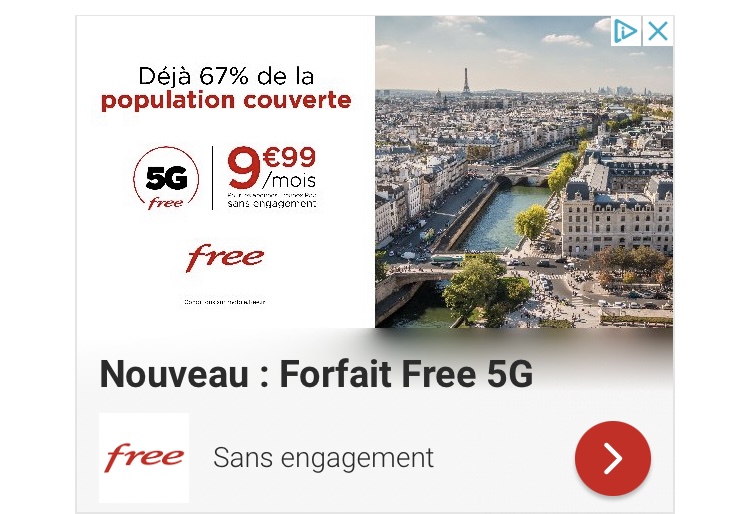 Grâce à l’utilisation de la bande 700 MHz et 3,5 GHz, Free couvre actuellement 67% de la population en 5G, annonce t-il aujourd’hui dans une publicité repérée sur internet. En termes de déploiement, Free dispose ainsi de plus grand réseau 5G avec plus de 12 000 sites opérationnels, devant Bouygues Telecom et ses 4400 supports, SFR (2900) et enfin Orange ( près de 2500).