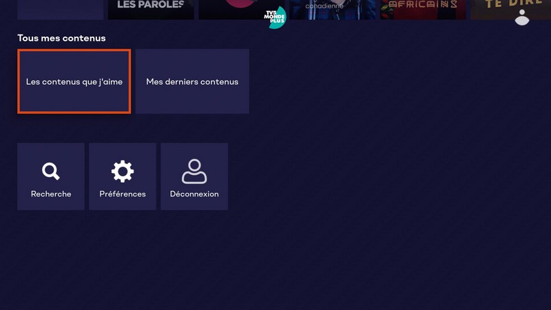 Côté téléviseur, deux nouvelles sections auront fait leur apparition : “Les contenus que j’aime” et “Mes derniers contenus”. Vous l’aurez d’ailleurs peut-être remarqué si vous avez essayé d’ajouter un contenu en favoris avant de vous connecter : un message d’erreur s’affiche et vous invite à vous connecter.