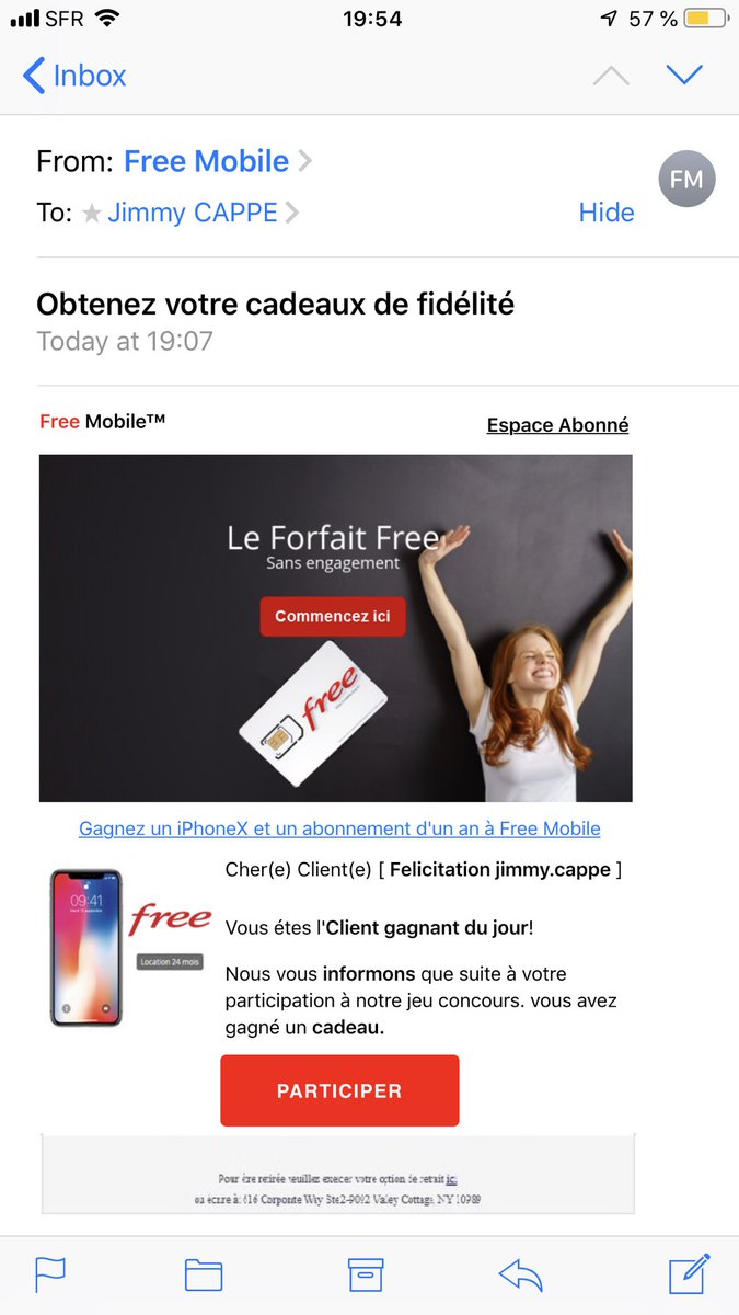 Mais une nouvelle attaque de type phishing, plutôt bien réalisée, est actuellement envoyée à certains internautes. Le mail envoyé arbore en effet un visuel qui fait penser qu’il s’agit de Free Mobile, il pourrait donc tromper la vigilance de certains d’entre vous.