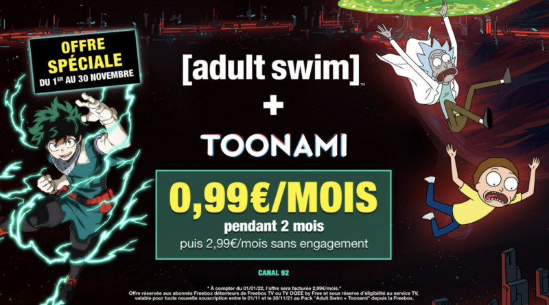 DC, Marvel, de l’animation japonaise, des super-héros et de l’humour à prix mini ? Free propose dès aujourd’hui et ce pour toute souscription jusqu’au 30 novembre prochain, le pack Adult Swim, Toonami et Toonami Max à 0,99€/mois au lieu de 2,99€/mois sans engagement. Le tout pendant 2 mois.