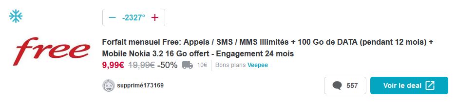 La vente privée Free a ainsi récolté, à l’heure où nous écrivons ces lignes, un score de -2327°. Un accueil plus que glacial pour cette offre promotionnelle, qui semble viser un public particulier.