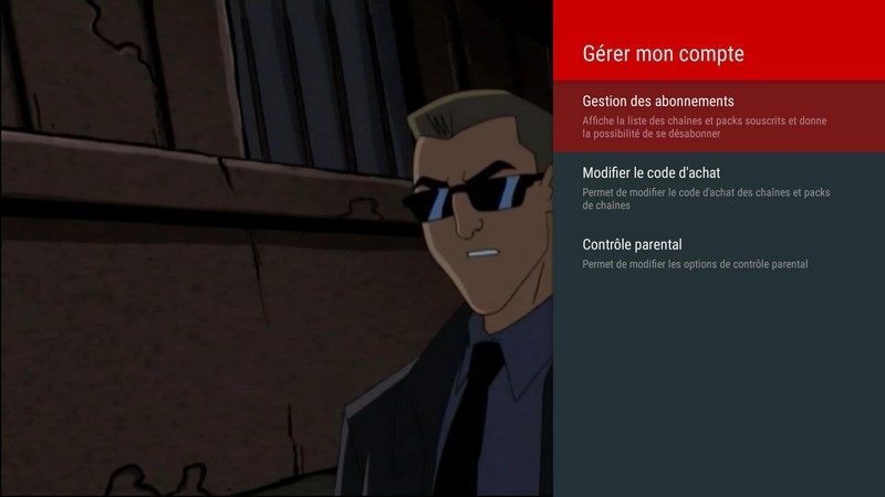 La gestion de l’abonnement à une chaîne peut également se faire via le menu apparaissant après un appui sur le bouton vert (M) de la télécommande.