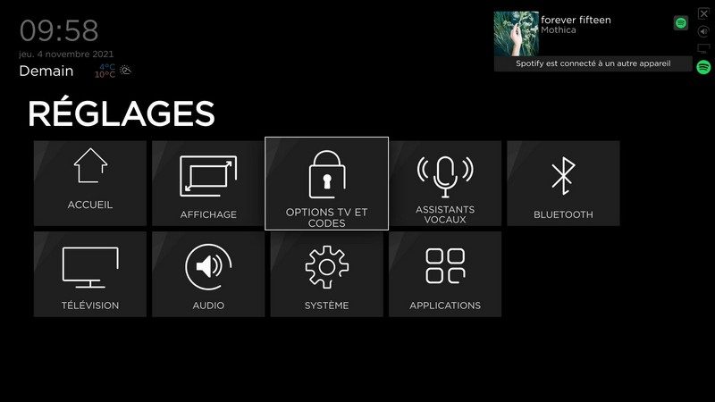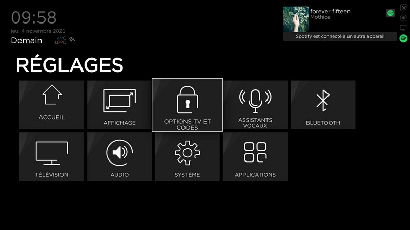 Sur le player Free Devialet, allez dans le bandeau “Réglages”, puis la section “Options TV et codes”.