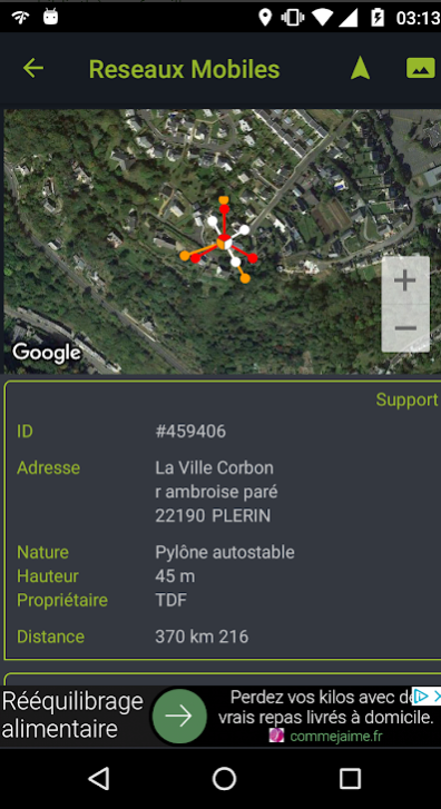 Un peu à l’instar de RNC Mobile pour les abonnés Free Mobile, cette application s’adresse aux utilisateurs désireux d’en savoir plus sur les antennes de leur opérateur respectif mais aussi sur le niveau du signal. Lancée en mars 2018, "Réseaux Mobiles France" propose également une fonctionnalité appréciable, à savoir la possibilité de cartographier sa propre couverture mobile "à partir des relevés de niveau du signal capté par votre téléphone", puis de partager ces données pour établir une carte de couverture des réseaux mobiles en France (Crowdsourcing).