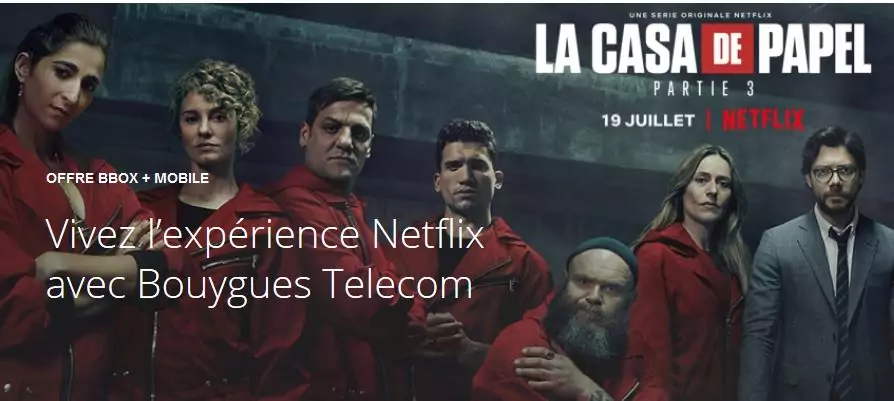 Bouygues Telecom propose une promotion d’été sur ses offres fixes + mobile, avec un abonnement à Netflix inclus durant les 12 premiers mois pour toute nouvelle souscription à une BBox Ultym ou Must avec un forfait 50Go ou plus.
