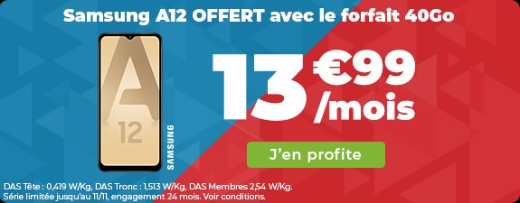 Jusqu’au 11 novembre, Auchan Telecom propose un forfait avec un smartphone Samsung Galaxy A12 en ton noir, en contrepartie d’un engagement de 24 mois.