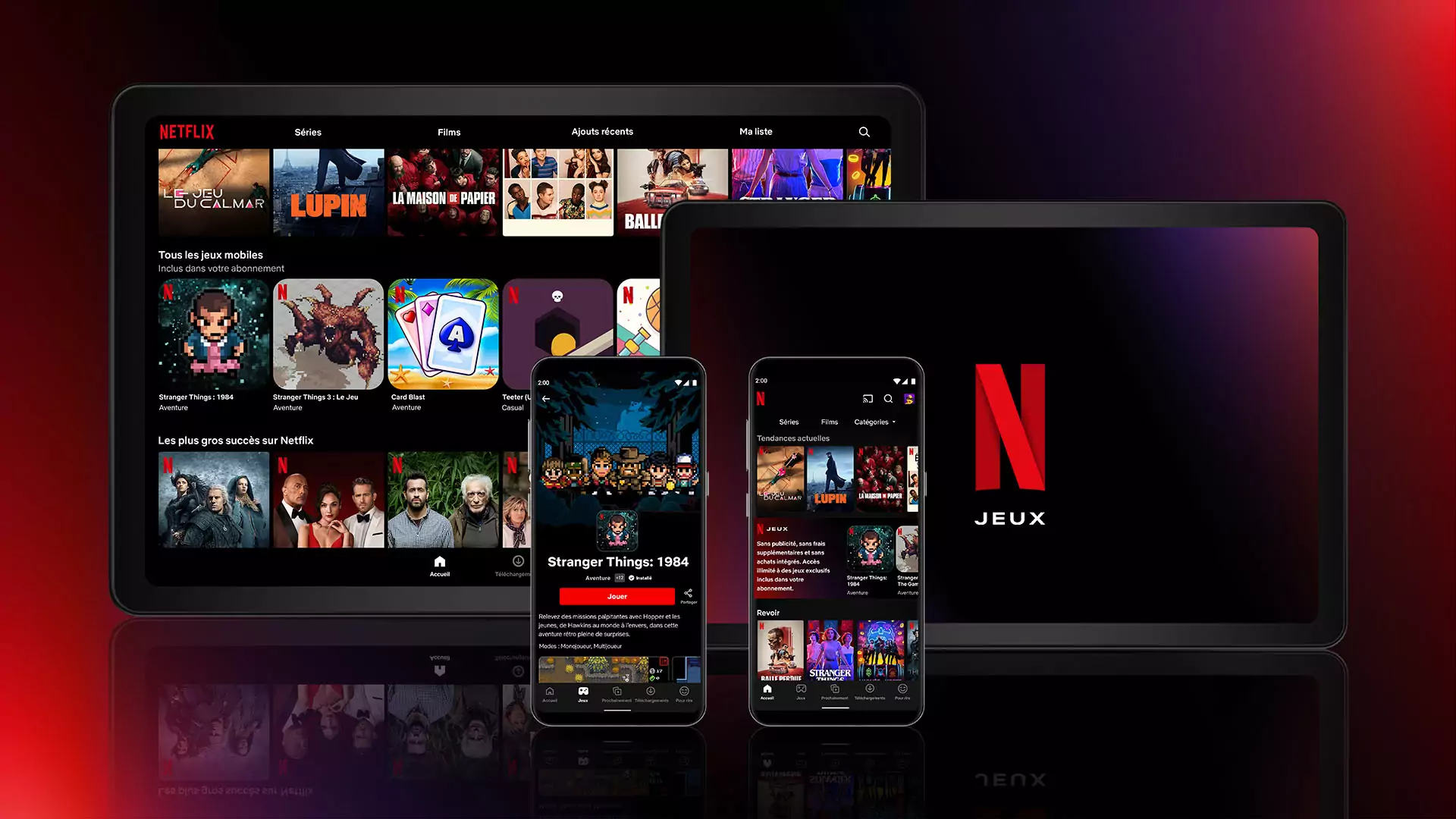 Les cinq titres sont les suivants : Stranger Things : 1984, Stranger Things 3 : Le Jeu, Shooting Hoops, Teeter (Up), et Card Blast. Le gameplay de chaque jeu varie, passant d’un jeu d’arcade où le but est d’enchaîner les paniers de basket à un jeu d’aventure vous plongeant dans l’univers d’une des séries cultes de la plateforme. La sauvegarde est automatique et liée à votre compte Netflix et même à votre profil. A l’heure où nous écrivons ces lignes, les jeux ne sont pas accessibles depuis l’application Netflix, il faudra effectuer une recherche sur l’App Store pour les télécharger séparément.