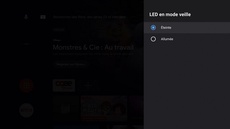 Vous voilà dans l’option. Vous pourrez alors indiquer si vous souhaitez ou non avoir la diode fonctionnelle lors du passage en mode veille (l’éclairage blanc devient moins intense) ou pour les retours télécommande (clignotements de la diode lors des appuis sur les boutons). Lorsque la diode est désactivée en mode veille ou pour les retours télécommande, elle ne sert alors plus qu’à indiquer l’allumage du player Freebox Pop.