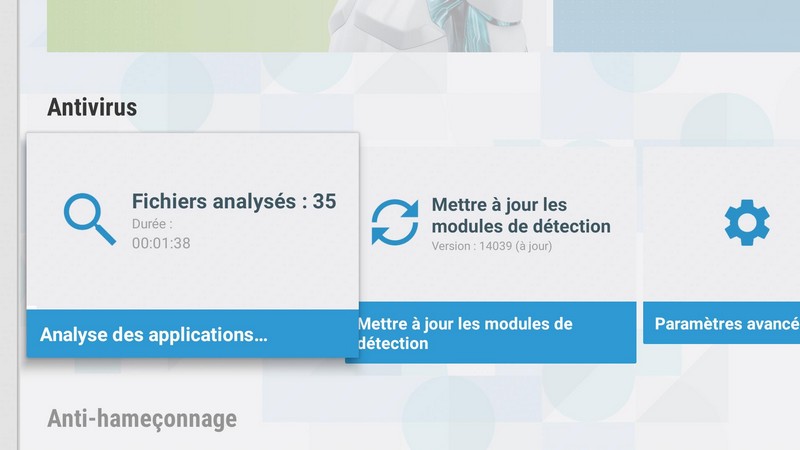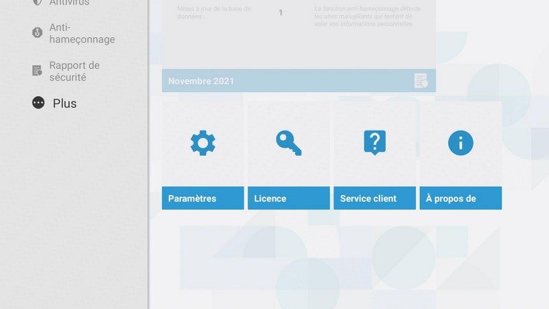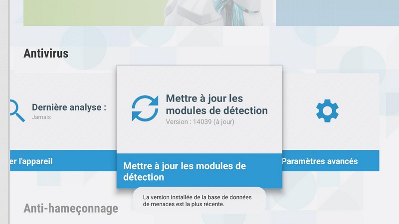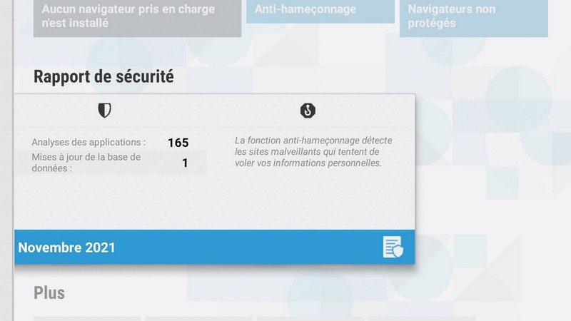 Dans la section “Rapport de sécurité, il est possible d’avoir les informations concernant l’analyse des applications, la mise à jour de la base de données et le filtre anti-hameçonnage.