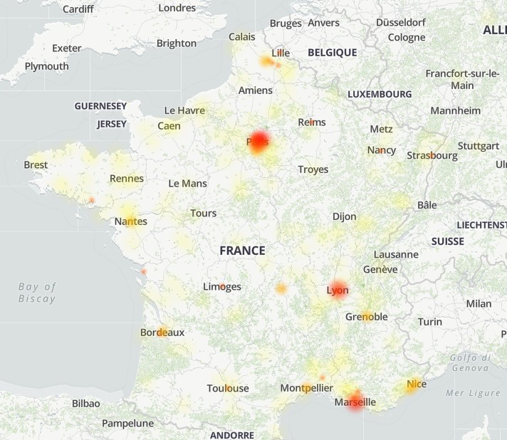 D’après la carte de DownDetector, les problèmes concernent principalement les abonnés Bouygues Telecom à Paris, Lyon et Marseille, mais également ceux à Lille, Nantes, Bordeaux, Grenoble, Toulouse, Montpellier et Nice.