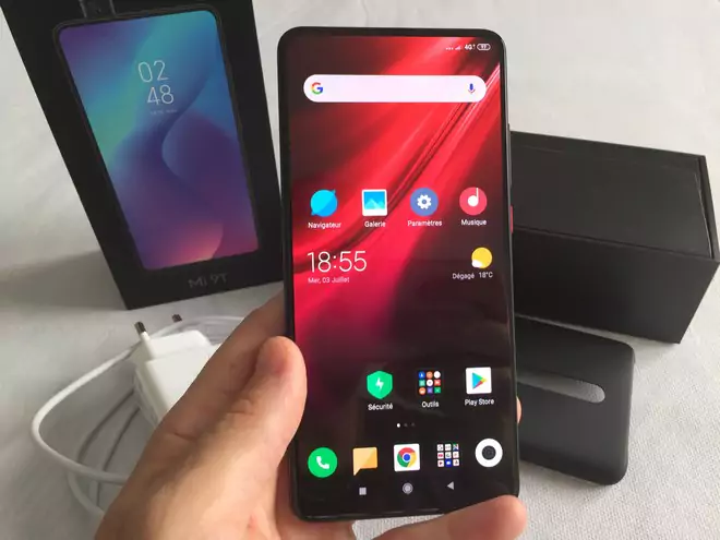 Le Xiaomi Mi 9T profite d’une finition exemplaire. Comme l’accoutumée avec les modèles dotés d’un dos brillant, il faudra composer avec les traces de doigts.
