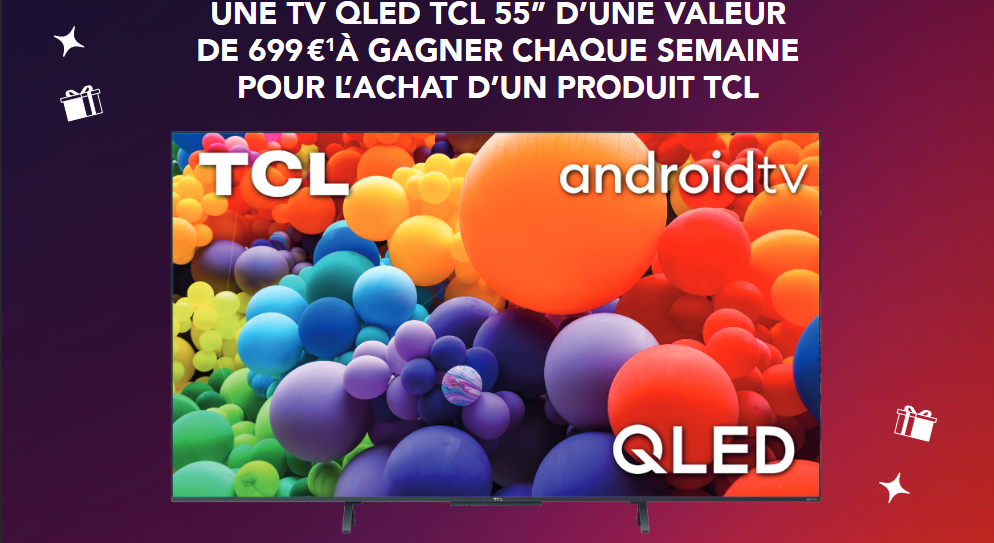 Il y’aura du stock à faire gagner, puisque le fabricant annonce en effet “une TV TCL 55C725 55 pouces à gagner chaque semaine” pendant un mois et demi environ. Concernant le modèle mis en jeu, sa valeur annoncée est de 699€, en embarquant android TV mais aussi une compatibilité HDR, 4K et Dolby atmos notamment. De l’avis de plusieurs connaisseurs du milieu, si le modèle n’atteint pas les capacités d’un téléviseurs premium, il permet l’accès à la technologie QLED à un prix plus abordable, ainsi que notamment une compatibilité de choix pour les gamers ayant basculé sur la nouvelle génération de consoles grâce à ses trois ports HDMI 2.1.