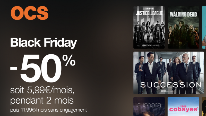 C’est parti pour le Black Friday chez OCS. Le service de SVOD propose une offre spéciale à 5,99€/mois pendant deux mois.
