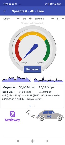 Ci-dessous, des débits obtenus en intérieur :