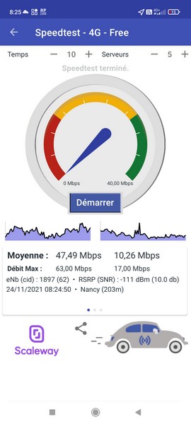 - 1 heure et 30 minutes de partage 4G