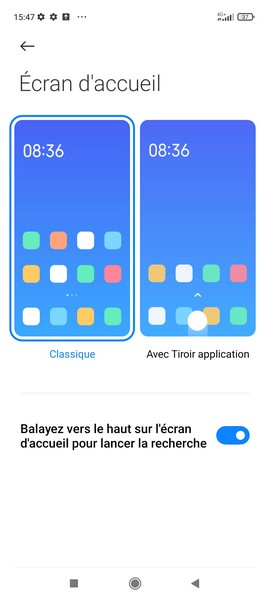 - Le choix d’avoir ou non le tiroir d’applications