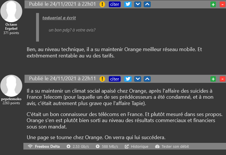 Le PDG d’Orange salué à son départ, un manque de cohérence dans les offres du fondateur de Free ? Vos meilleures réactions à l’actualité de Free et des télécoms