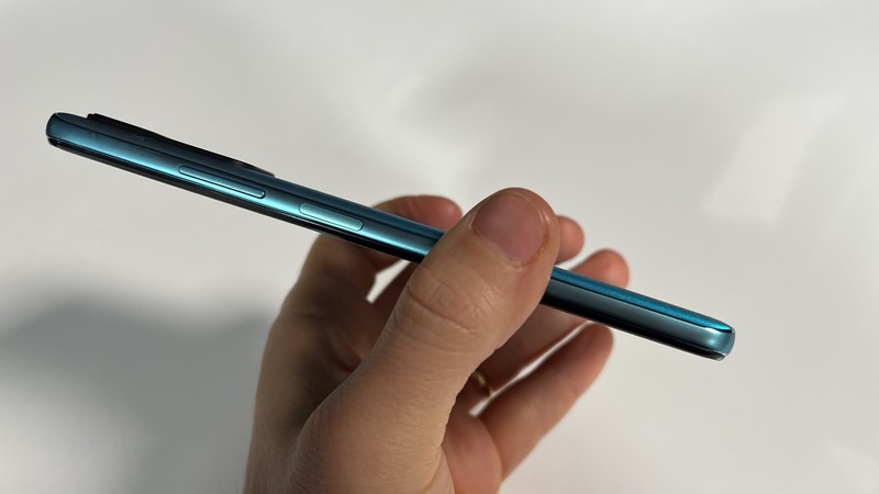 Entre les mains, le Poco M4 Pro 5G se révèle glissant lorsqu’il n’est pas équipé de sa coque de protection (celle fournie). Si vous êtes maladroit, la coque est vivement conseillée. Le bloc photo arrière apparaît bien intégré, dépassant à peine et ne dépassant plus une fois la coque installée. Deuxième raison de mettre la coque. Quant au poids de l’ensemble, il est raisonnable.