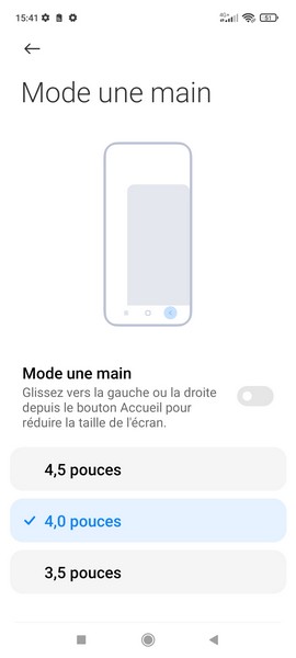 - Le mode à une main avec trois diagonales (3,5, 4 et 4,5 pouces)