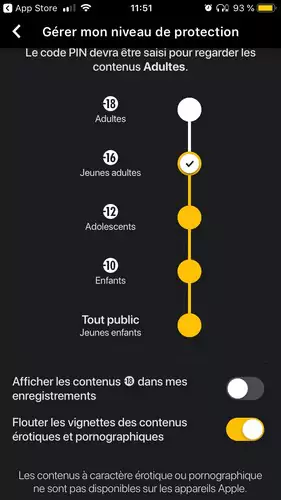 Cette mise à jour est synonyme d’un contrôle parental "revu de A à Z". "Vous pouvez configurer plus finement les contenus affichés dans l’application et les programmes hors catégorie sont maintenant protégés par un code PIN", indiquent en effet les développeurs. En parallèle, d’autres petits bugs ont été corrigés.