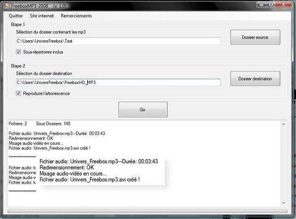 Vous souhaitez écouter vos musiques préférées directement sur votre Freebox HD sans passer par votre PC, et bien FreeboxMP3 est la solution idéale pour vous ! Ce programme totalement gratuit vous permet de transformer vos fichiers audios MP3 en fichiers .AVI pour qu’ils soient directement compatibles et lisibles avec la freebox HD.