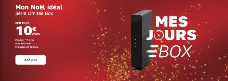 L’opérateur au carré rouge commercialise une série limitée SFR fibre à 10 euros par mois pendant un an au lieu de 38 euros par mois. Soumise à un engagement d’un an, elle annonce des débits jusqu’à 500 Mbit/s en émission comme en réception, les appels illimités vers les fixes en France et 160 chaînes et services TV. La box est compatible Wi-Fi 5 et le player compatible 4K.
