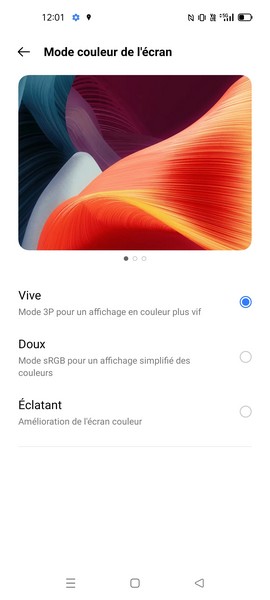 Dans les paramètres, vous pourrez ajuster les couleurs et le taux de rafraîchissement, mais également trouver un mode sombre et un mode confort des yeux. Vous aurez aussi la possibilité de masquer le poinçon avec une bordure noire créée par le logiciel.