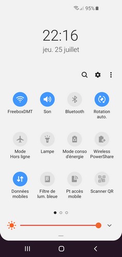 En parlant de charge, le Galaxy S10e propose de la recharge sans-fil. Il a ainsi pu faire le plein en étant posé sur le player de la Freebox Delta. Mais la charge sans-fil fonctionne également dans l’autre sens. Grâce à la fonction Wireless Powershare, accessible depuis le panneau de raccourcis (glisser du haut vers le bas, depuis l’écran d’accueil), le Galaxy S10e peut ainsi recharger un autre appareil compatible avec la recharge sans-fil. Le smartphone d’un ami, par exemple.