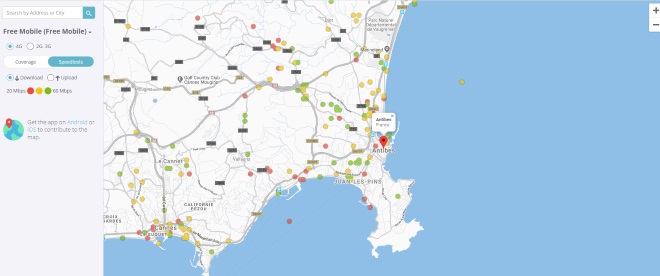 Avec les données de notre partenaire Sensorly, Univers Freebox vous propose un focus sur Antibes, 68ème ville de France par sa population et vous fait découvrir la carte de la couverture du réseau 4G et des débits.