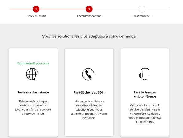 En cas de blocage à l’étape 2 à 9 sur votre Freebox, il vous est alors recommandé d’aller sur le site de l’assistance. Mais vous pouvez également contacter le 3244 par téléphone ou opter pour la visioconférence Face to Free sur ordinateur, smartphone ou tablette.