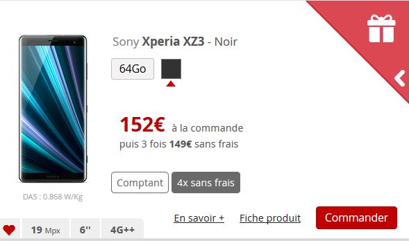 Le modèle de Sony est proposé avec une réduction de 150€, faisant donc passer son prix de 749€ à 599€ si vous payez au comptant. Si vous choisissez le paiement en 4 fois sans frais, il faudra s’acquitter d’un premier paiement de 152€ à la commande, puis trois fois 149€ sans frais. Univers Freebox vous avait présenté un test de ce smartphone le jour de sa sortie et celui-ci avait conquis notre testeur.