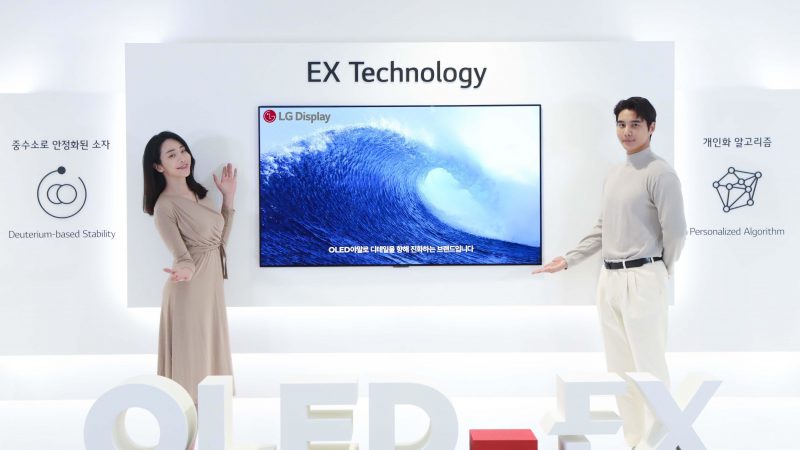 Le suffixe EX allant pour Evolution et eXperience, est le nom de cette technologie développée depuis 10 ans dans les laboratoires de la firme coréenne dans le but de faire taire les critiques émises face à l’OLED, lancé en 2013. Face à un manque de luminosité noté par les habitués de l’OLED, LG veut ainsi proposer des diodes capables d’émettre une lumière plus intense et de conserver une bonne efficacité sur la longueur, tout en résistant mieux à la chaleur. Ainsi, LG Display annonce une luminosité en progrès de 30% ainsi que des couleurs plus vives, plus longtemps. La rétention d’image (ou “image fantôme”) sur l’écran devrait également être moins présente.