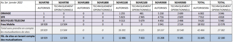 L’ANFR vient de publier son observatoire du déploiement de la 5G en métropole. Au 1er janvier 2022, 31 650 sites 5G ont été autorisés et 22 180 ont été déclarés techniquement opérationnels. Free reste l’opérateur qui en compte le plus, devant Bouygues Telecom, SFR et Orange, mais deux concurrents appuient sur l’accélérateur pour déployer la 3.5 GHz.