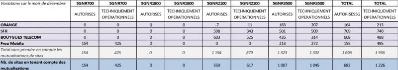 Le classement des opérateurs en terme de déploiement de sites 5G au début de cette nouvelle année est donc le suivant :