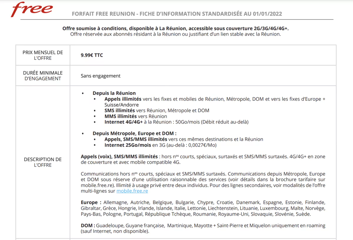 Les nouveaux tarifs et nouvelles modifications sont appliqués depuis le 1er janvier 2022. Vous pouvez découvrir la brochure tarifaire à l’adresse suivante : https://mobile.free.re/docs/tarifs.pdf