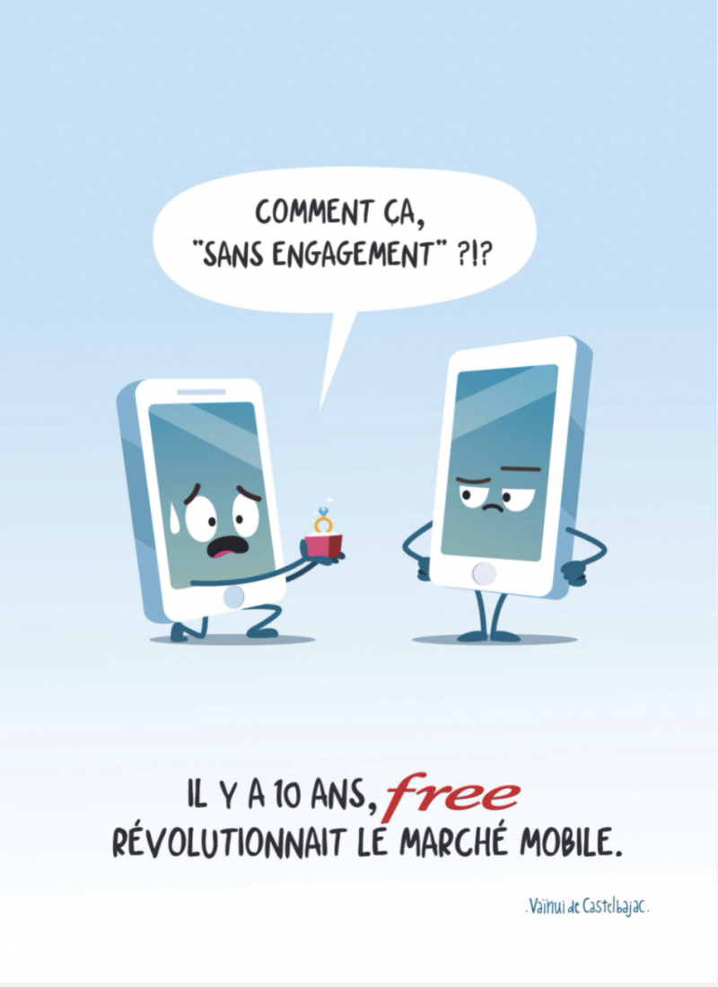 Prix bas, transparence, illimité, simplicité, générosité, liberté… Free mène sa révolution mobile depuis 10 ans. L’occasion de laisser libre court à l’imagination d’illustrateurs afin d’immortaliser l’empreinte laissée par le trublion.
