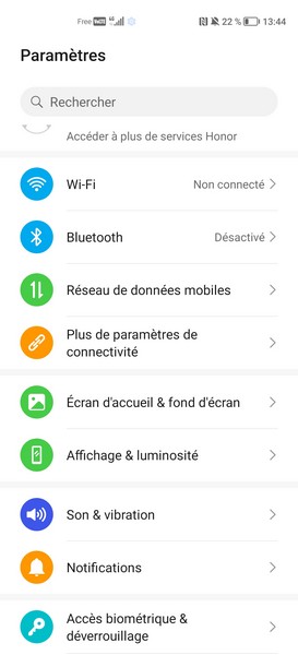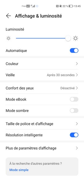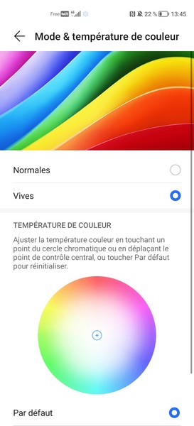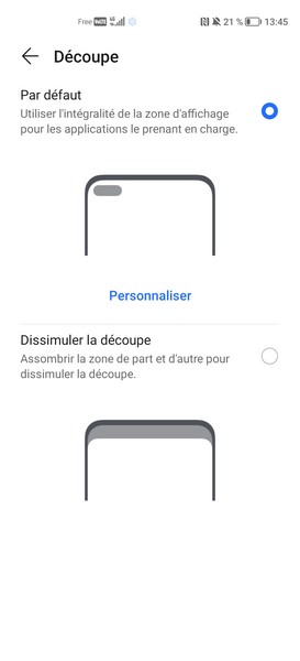 Pour rester sous la barre des 300 euros, Honor a fait le choix de faire l’impasse sur l’AMOLED, mais également sur le taux de rafraîchissement au-delà des 60 Hz standards. Le Honor 50 Lite profite fort heureusement de la définition Full HD+ et du poinçon pour la caméra avant, mais également d’une bonne luminosité et de bons angles de vision. Ce n’est pas l’écran cochant toutes les cases, mais un écran malgré tout très agréable à utiliser. Depuis les paramètres, il sera possible d’ajuster le mode de couleur ou encore de trouver des modes de fonctionnement en fonction des scénarios (confort des yeux, mode ebook et mode sombre). Vous pourrez même masquer le poinçon avant une bordure virtuelle créée par le logiciel.