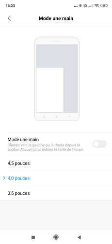 Le mode à une main proposant trois diagonales d’affichage réduites (3,5, 4 et 4,5 pouces)